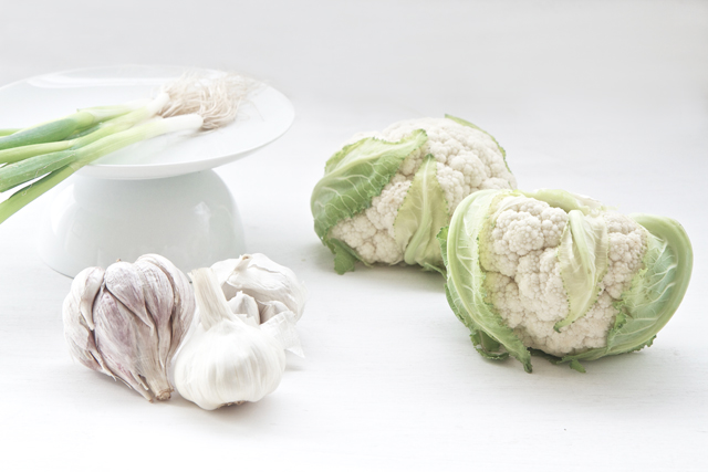 Cauliflower lacks the green chlorophyll found in other vegetables of its class like broccoli, cabbage and kale, because the florets are protected from the sun by its green leaves during its growth. It does however provide many of the same nutrients of those vegetables. It helps strengthen the immune system and protects against the development of cancer forming cells.