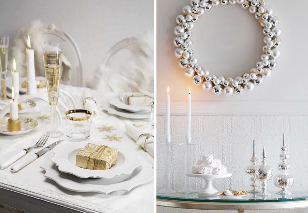 { babys breath Christmas wedding table decor / once.dailychic : silver centre pieces 51 exquisite vintage Christmas table pieces / digsdigs : Christmas table decor / yourpictures.in : elegant gold table setting / casadecorada45 }